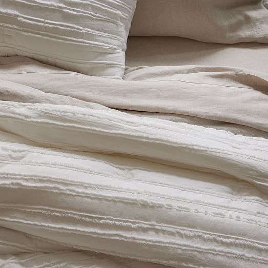 Belgian Flax Linen Fringe Ruffle Duvet Cover King Cal King Classic Ivory Pottery Barn Havenly